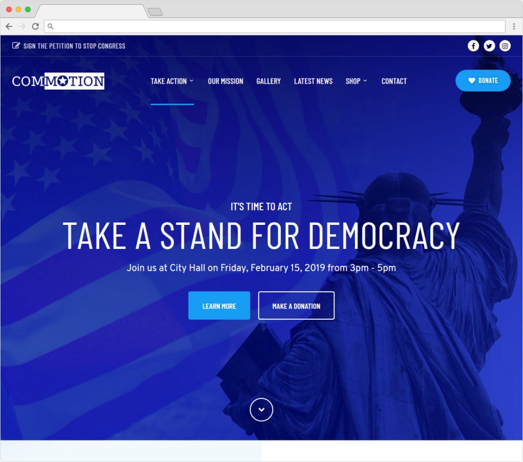 We found a new collection that you might like. Templified made it and it’s called Commotion, Online Fundraising and Politics Theme.